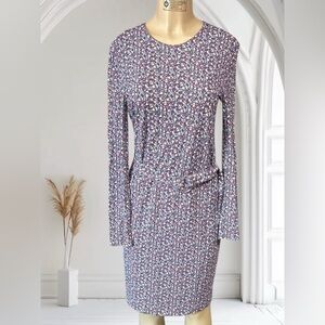 Tory Burch Blue Ruched Long Sleeve Sheath Dress