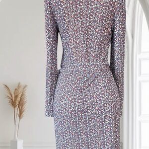 This elegant sheath dress by Tory Burch features a ruched design in a striking blue color, perfect for casual or work settings. The long sleeves and crew neck add a touch of sophistication, while the ruched detailing offers a flattering silhouette. Crafted from a comfortable, stretchy fabric, this dress ensures ease of movement throughout the day.