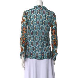 Elevate your wardrobe with this Tory Burch Silk Printed Blouse in a stunning multicolor pattern. Crafted from luxurious silk with a touch of rayon, this blouse features a relaxed cowl neckline, long sleeves, and a vibrant bohemian-inspired print that makes it effortlessly chic for both work and weekend wear.