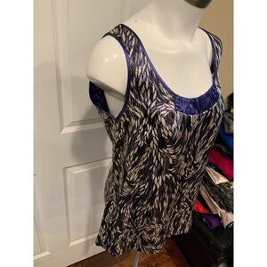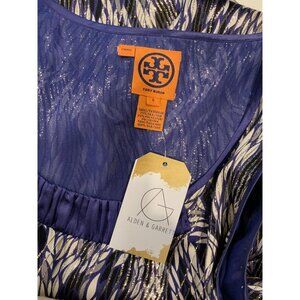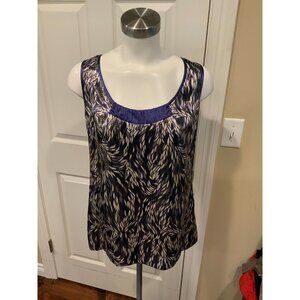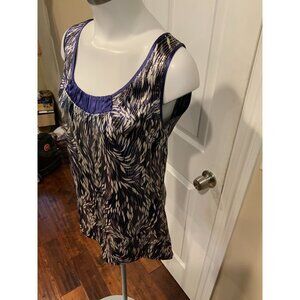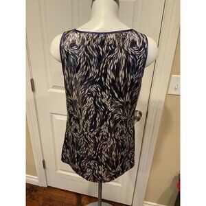 Tory Burch Blue, Silver & White Wavy Shimmering Silk Sleeveless Top, Size 8