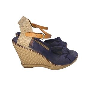 Tory Burch Blue and Tan Wedge Sandal size 9