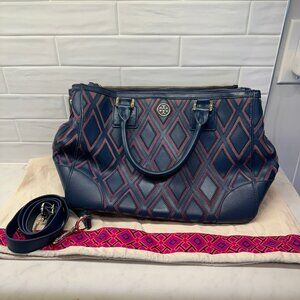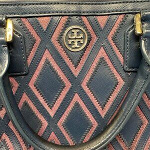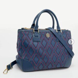 Tory Burch Blue/Purple Robinson Patchwork Double Zip Tote