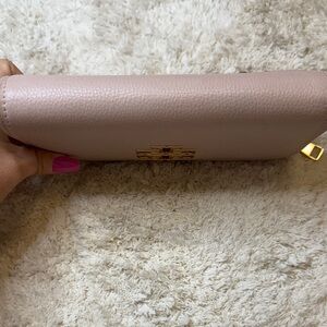 Tory Burch Blush Pink Britten Duo Envelope Continental Wallet with Gold Logo