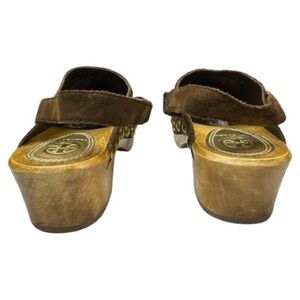 Tory Burch clogs, Blythe clogs suede, Arabica brown clogs, studded suede mules, wooden platform clogs Tory, luxury designer clogs women, brown suede platform shoes