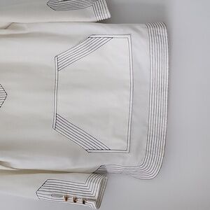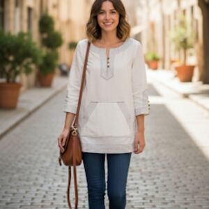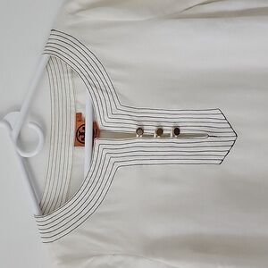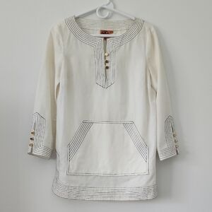 Tory Burch Boho Chic White Tunic with Black Stitch Detail and Gold Buttons Size 4