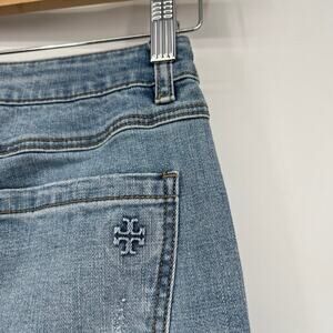 Tory Burch Boot Cut Ankle Front Slit Light Wash Jeans Women's 26 Blue