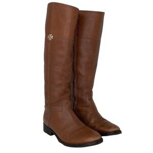 Tory Burch Boots Jolie Women's 6 Rustic Brown Pebbled Leather Heeled Knee