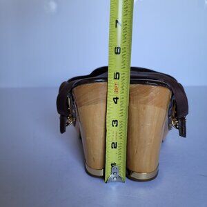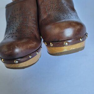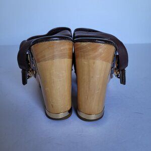 Tory Burch Brayden Perforated Leather Logo Slingback Wood Clogs. Size 7.5M