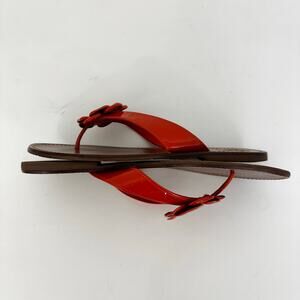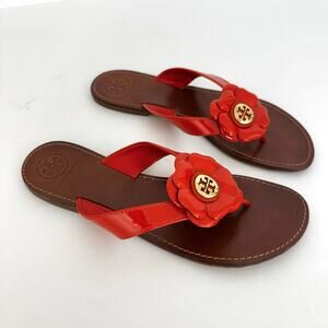 Tory Burch Breely Flower Patent Leather Sandal Slippers Flip Flops Orange 10M