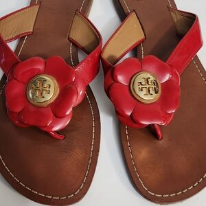 Step out in style with these Tory Burch red floral sandals. Perfect for adding a pop of color to any outfit.