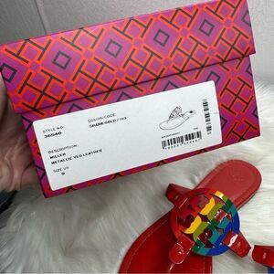 Tory Burch Bright Rainbow Ruby Red Miller Sandals 9