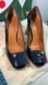 Georgia Pump Bright leather square toe , Mid heel, beautiful blue color in good condition, size 7