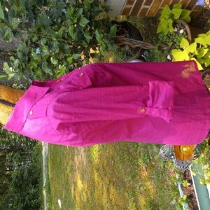 Tory Burch Brigitte Pink Purple Long Sleeve Roll Tab Button Up Blouse