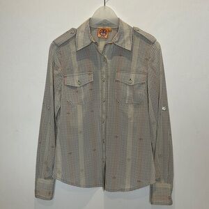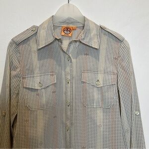 Tory Burch Top in Silk blend with mini dots and all over Tory’s logo print. Academia style.