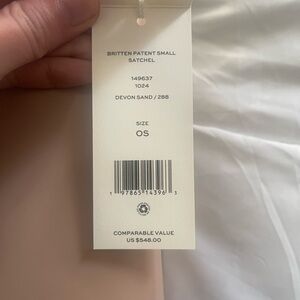 leather Punctuated with Britten's cut-out rolled brass double T logo Leather top handle and an adjustable detachable crossbody strap Top bridge flap with magnetic snap closure Center interior slip pocket, one interior zipper pocket, one interior front wall slip pocket Measurement: 12 ” W x 8”H x 4.5” D