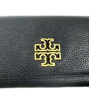 Tory Burch Britten Envelope Wallet Black Pebbled Leather
