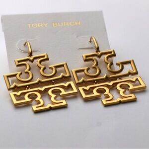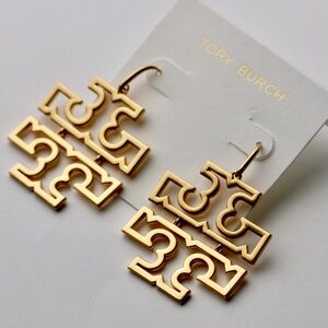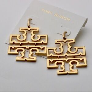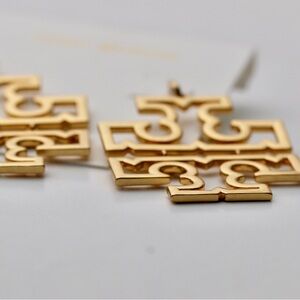 Elevate your style with these stunning Tory Burch Britten Gold Logo Drop earrings. The elegant dangle/drop style features the iconic Tory Burch logo in beautiful gold-tone brass metal, adding a touch of luxury to any outfit. The earrings are perfect for any occasion and are sure to become a staple in your jewelry collection.