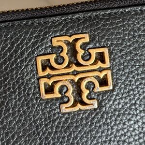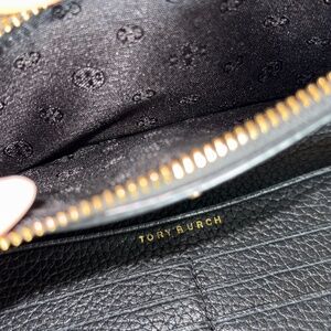 Tory Burch Britten handbag and matching Britten Wallet in black pebbled leather with gold-tone hardware.