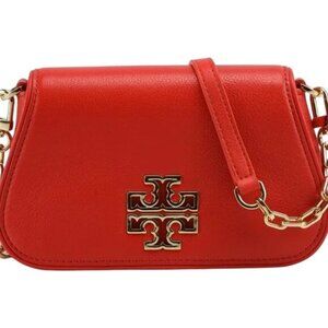 RARE! NWT Tory Burch Britten Mini Bag. Samba ( bright orange) leather bag. Gold tone hardware. Adjustable strap and detachable. Three card slots. Converts into a clutch, shoulder bag, and crossbody. NO TRADES.