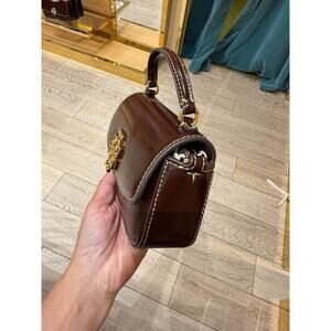 Color: Tempranillo Material: Patent Leather Condition: Brand New With Tag Style Number: 153726 Dimension: Height: 4” ; length: 7” ; depth: 1.75” Top Handle Holds an iPhone Pro Max Rolled gold hardware Snap closure 1 interior card pocket Brand New with Tags Attached (100% Authentic) No dust bag included Smoke free environment
