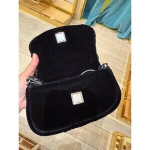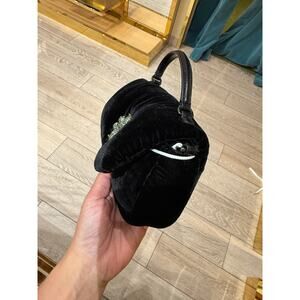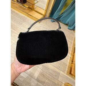 Color: Black Material: Velvet Condition: Brand New With Tag Dimension: Height: 4” ; length: 7” ; depth: 1.75” Top Handle Holds an iPhone Pro Max Snap closure 1 interior card pocket Brand New with Tags Attached (100% Authentic) No dust bag included Smoke free environment