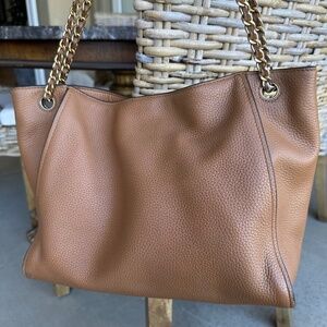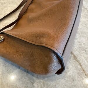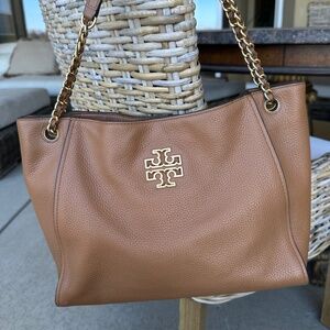 Tory Burch Britten Triple Compartment Bark Colour Tote Shoulder Handbag