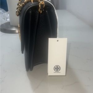 This Tory Burch handbag is a must-have for any fashion-forward woman. With its sleek crossbody style, it's perfect for on-the-go use. The brand is synonymous with luxury and this bag does not disappoint. Crafted with the highest quality materials, it's sure to stand the test of time.