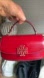 Chic Tory Burch shoulder bag in vibrant cherry red. Features iconic logo and sleek design. Perfect for any outfit.