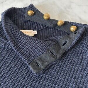 Tory Burch Brodie Tunic Sweater Dress, women's size XS. Navy blue knit sweater dress has a turtleneck with gold-tone buttons with Tory Burch logo. Excellent condition. 70% Viscose, 30% Acrylic; Trim: 100% Merino Wool; Dry Clean.