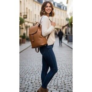 Tory Burch Brody Backpack Brown Pebbled Leather Multi Pocket Bag