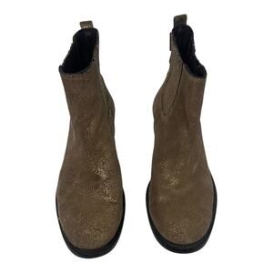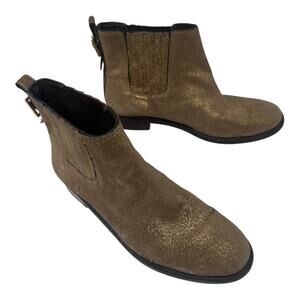 Tory Burch Bronze Gold Shimmer Suede Ankle Boots Size 7