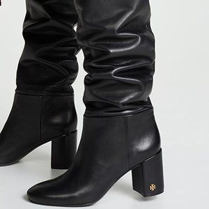 New, Tory Burch, Brooke Style, Perfect Black, 75mm Slouchy boots. Size 8.5. Style #49355. Only worn once, they were too small (they run slightly small because I usually wear an 8 or 8.5 in Tory Burch). Comes with dust cover. No trades.