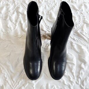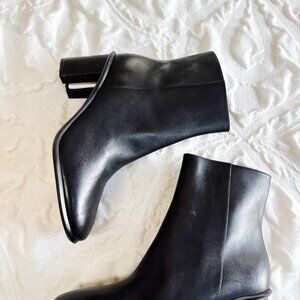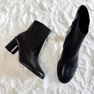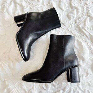 Brooke Stamped Heel Leather Bootie in black leather with rounded toe