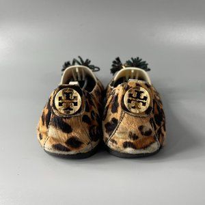 Tory Burch Brown Abbey Ballerina w/Tassel Leather Leopard Slip-on Flats, 8.5