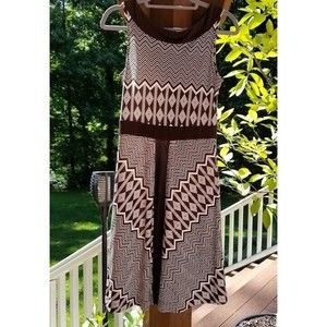 Tory Burch Brown Chevron Midi Sleeveless 100% Silk Dress Sz Small