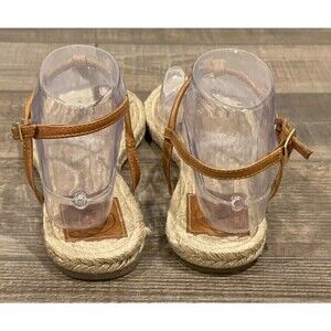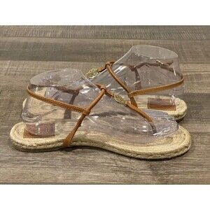 Tory Burch Brown Leather Emmy Flat Espadrilles Thong Sandals Size 8B Womens