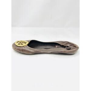 Tory Burch Brown Leather MINNIE Travel Ballet Flats w/Gold Hardware Sz 10 M