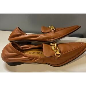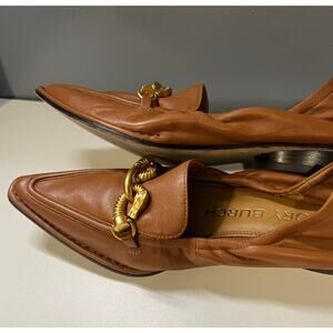 Elegant brown leather loafers. Features signature Jessa gold detail.