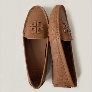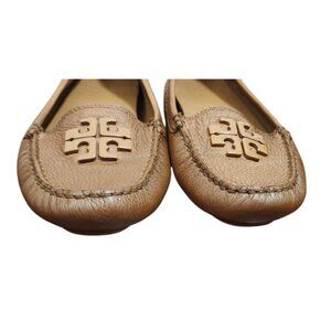 Tory Burch Brown ROYAL TAN ROLLED BRASS Loafers EVERLY DRIVER Leather Size 7.5
