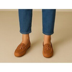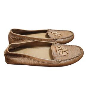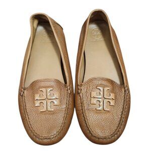 Tory Burch Brown ROYAL TAN ROLLED BRASS Loafers EVERLY DRIVER Leather Size 7.5