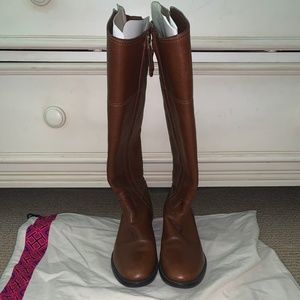 Tory Burch Brown Box in Logo Junction Riding Boots