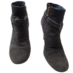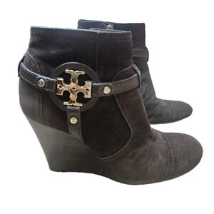 Tory Burch - Brown Suede "Aaden" Wedge Ankle Booties W/ Logo