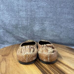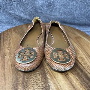 Tory Burch Brown Tan Reptile Ballet Flats Women's Size 8.5M Gold Logo Medallion