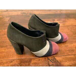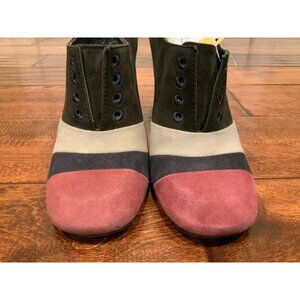 Tory Burch Brown, White, Pink & Navy Stella Lace-Less Oxfords Heels Size 7 (US)