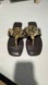 Stylish Tory Burch sandals. Brown leather with gold accents. Snakeskin pattern strap.