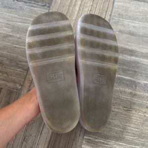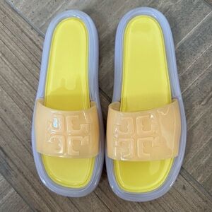 Tory Burch Bubble Jelly Sandal Size 8 Peach Citron. Gently used condition. A semi-transparent sole grounds this playful, nostalgic slide sandal topped with a logo-detailed vamp strap.