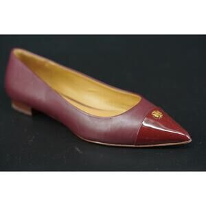 TORY BURCH BURGUNDY LEATHER FAIRFORD POINTY TOE BALLET FLATS SZ 6 LOGO $250 NEW