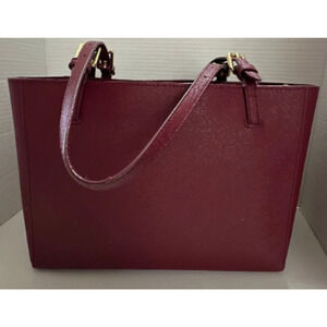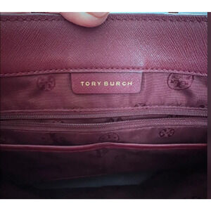 Tory Burch Burgundy Red Saffiano Leather Emerson Tote Bag w/Gold Tone Hardware - Great used condition.