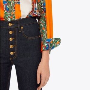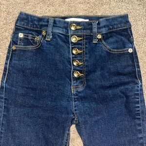 Tory Burch Button Fly High Waisted Ankle Jean Dark Wash Blue 24
