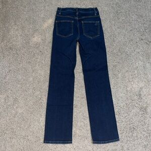 Tory Burch Button Fly High Waisted Ankle Jean Dark Wash Blue 24. Style 53513. Exposed button-fly closure and five-pocket silhouette. Contrast stitching, gold-tone monogram logo hardware, and belt loops. Dark wash and straight-leg silhouette. Approx measurements: 10“ rise, 27.5“ inseam, & 11.25“ waist. Great pre-owned condition. No stains/flaws. Smoke/pet free home. Offers welcome. Bundle & save. Ship same/next day. Packaged w/ care.